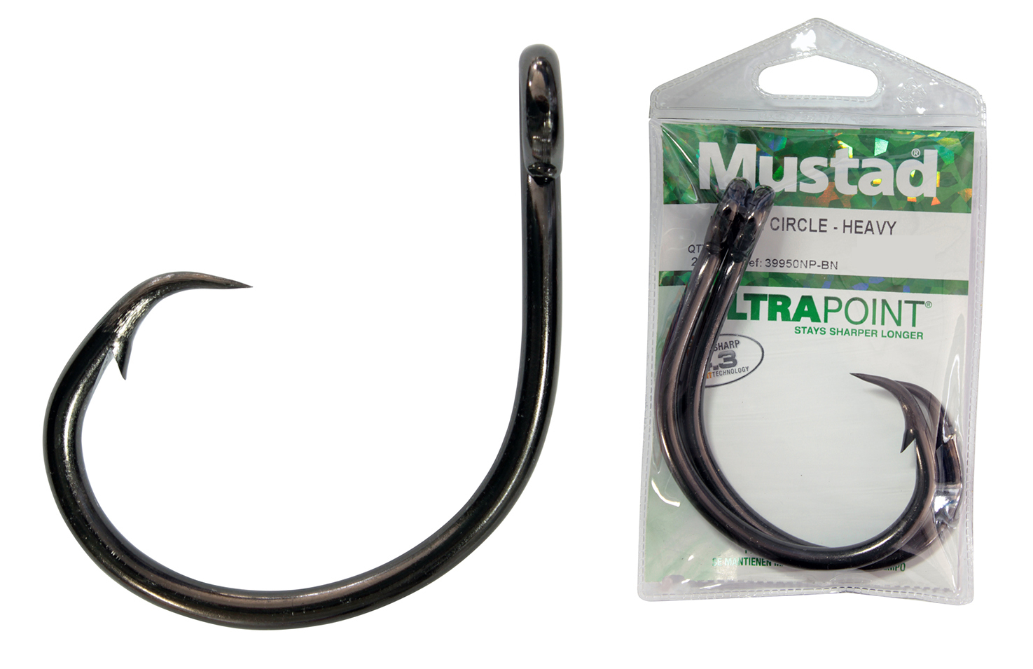 The Demon 39950NP-BN is a non-offset circle hook rated 3 extra strong and available in sizes 16/0 to 4/0. It is equipped with Ultra Point, Mustad's unique process making chemically sharpened Needle Points more resistant to bending and breakage. The hook is finished in black nickel.