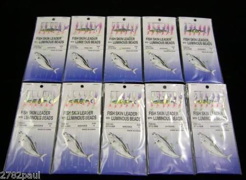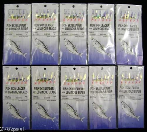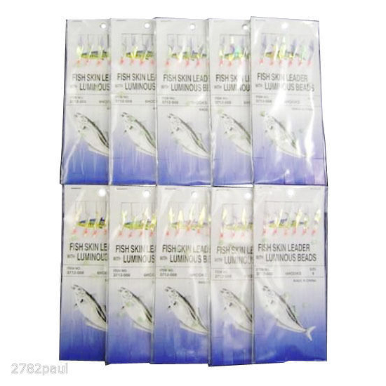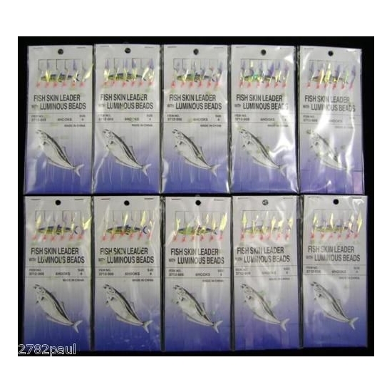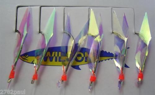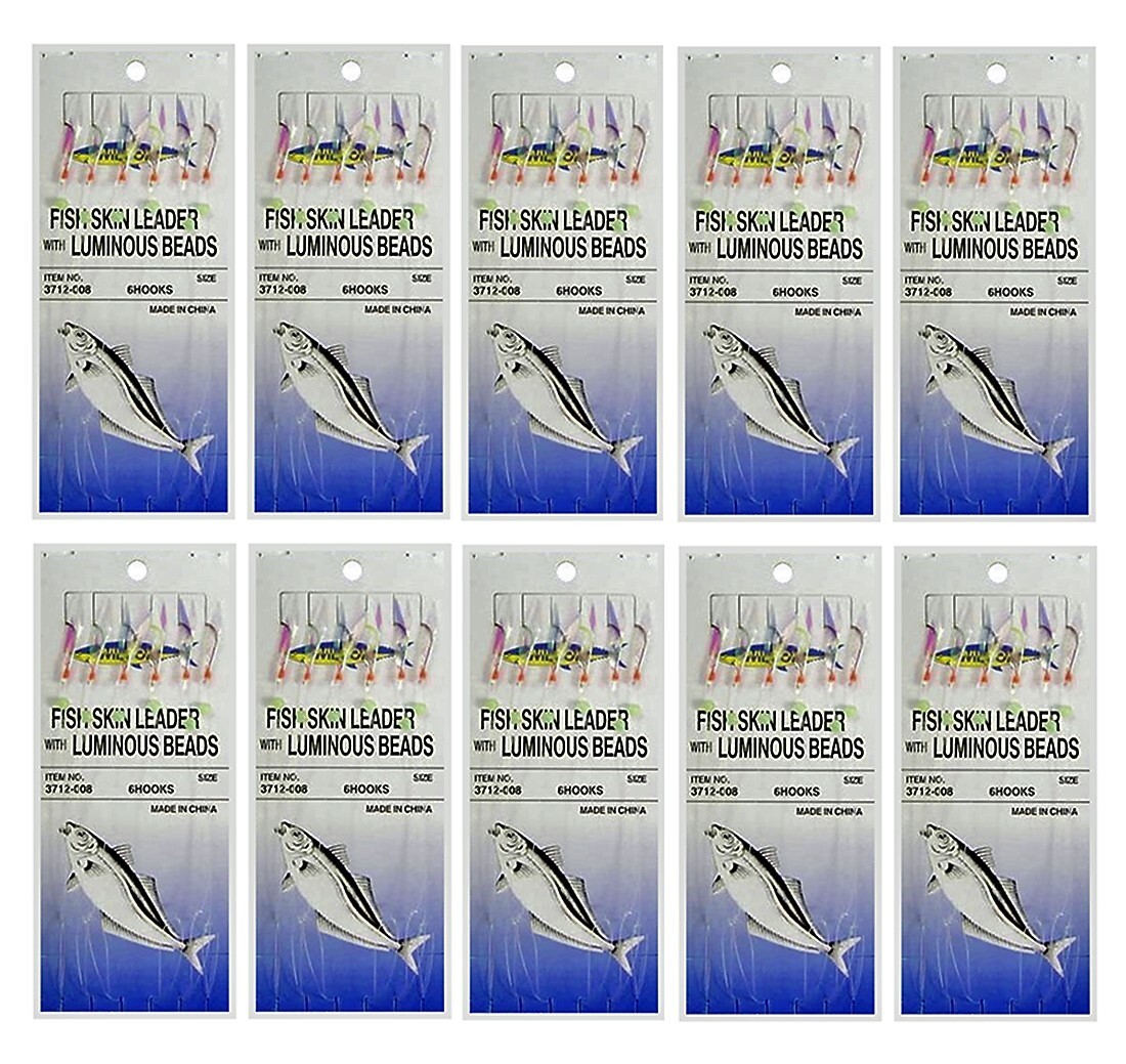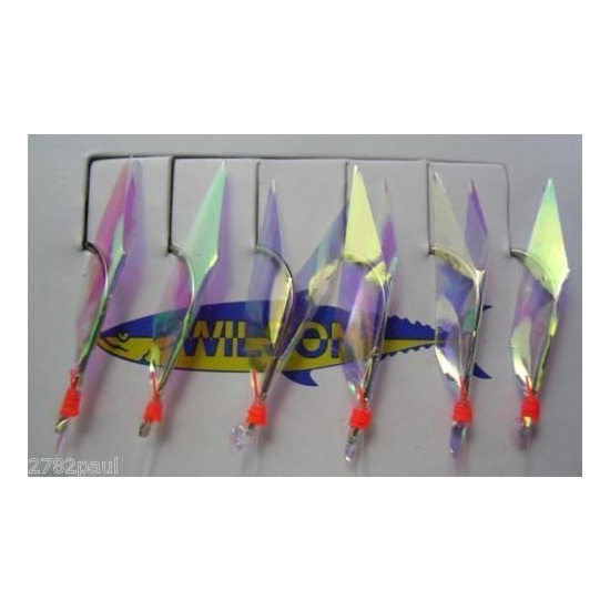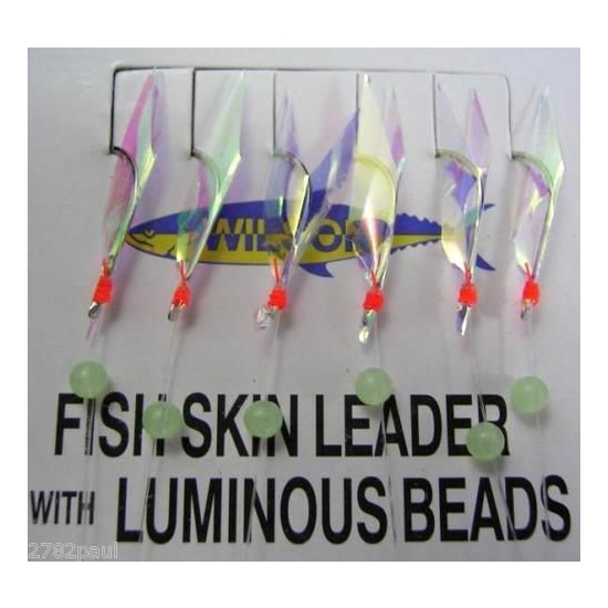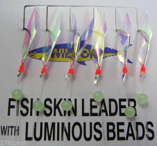 Each jig has 6 hooks rigged with fish skin leader and luminous beads. The Wilson bait jigs are one of the top selling bait jigs on the market and will out fish all other brands.