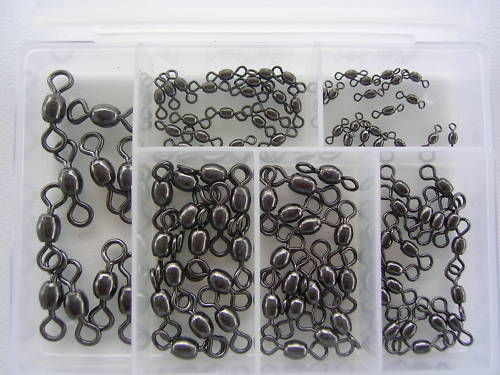 100 x Surecatch Assorted Black Crane Swivels in Fishing Tackle Box