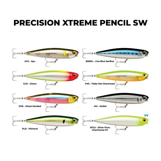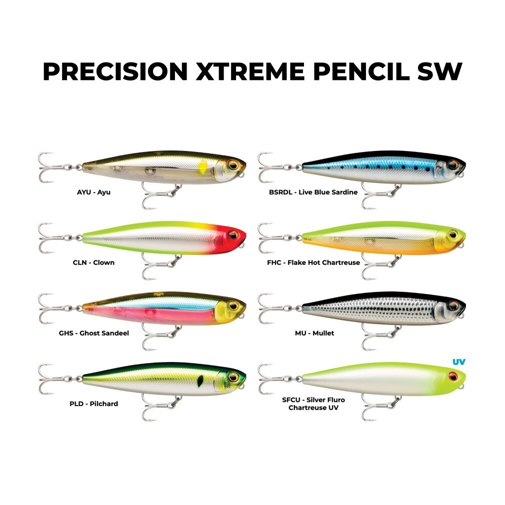 This results in a sequence of high and low pitch, attracting fish from near and far! The extremely detailed Precision Xtreme Pencil Saltwater features printed scales, a new 3D holographic eye, and comes in 12 vivid saltwater prey patterns.