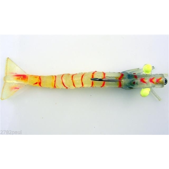 The Live Shrimp can be rigged on the supplied weedless worm hook or on a conventional jig head for open area fishing and the lumo eyes and segmented tail provide even further attraction while this lure is being used.