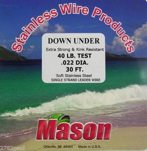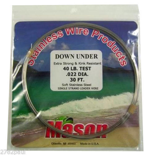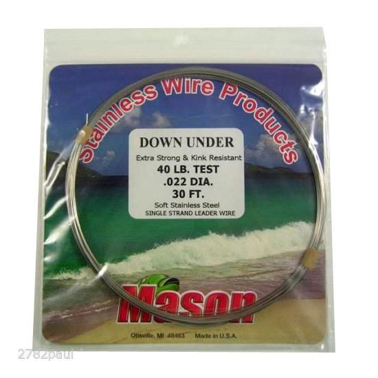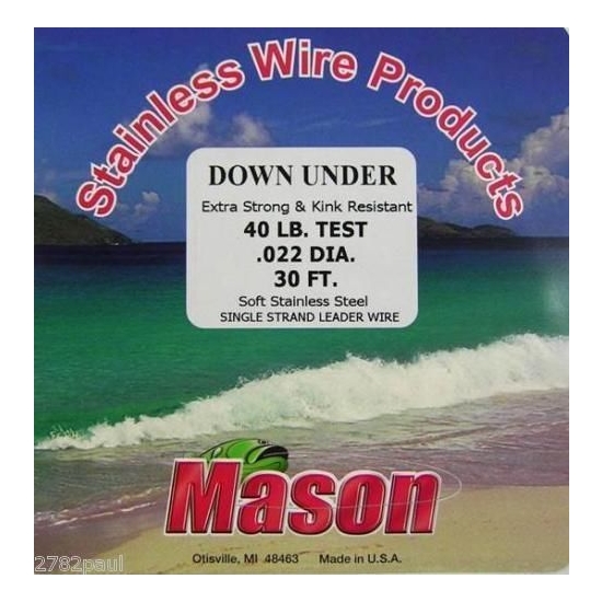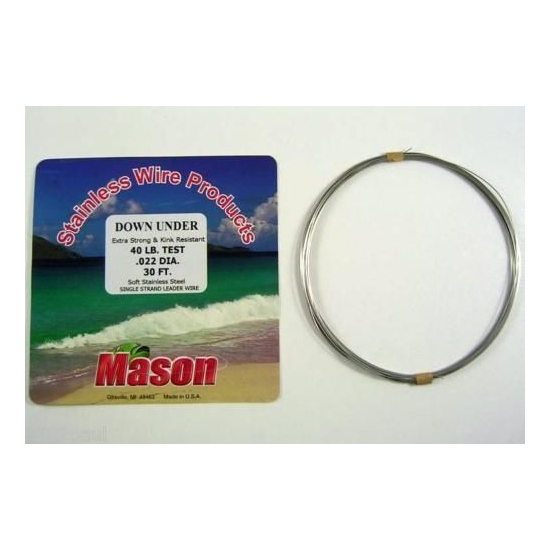 "DOWN UNDER" Trolling Wire - Mason's soft trolling wire is specially soft drawn and annealed for easy handling and maximum strength. This range has a small diameter per lb. test to fit deep water trolling reels used in fresh and salt water.