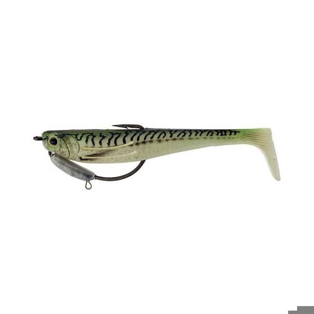 5 Pack of 4 Inch Rigged Tsunami Tazer Swim Bait Soft Plastics - Green Mackerel