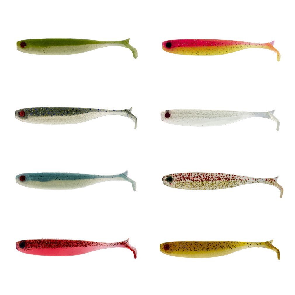 The Mezashi Z-Tail Minnow features a kicked tail to give the plastic a faster tail beat.