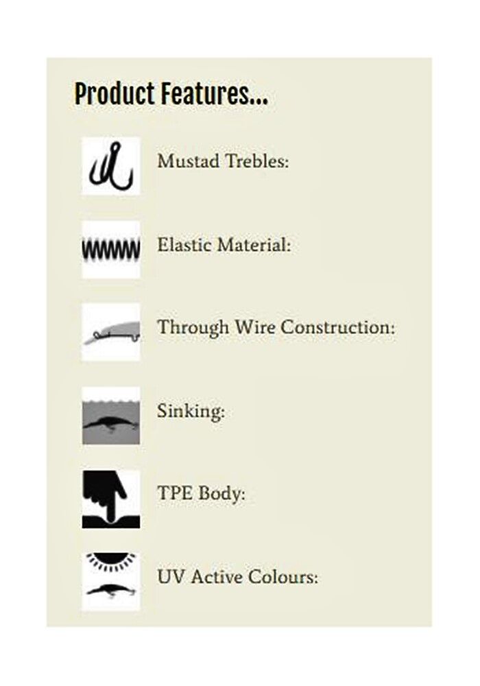 Built from virtually indestructible TPE plastic, the Fish Trap has been designed to take on the toughest of fish with the use of extra strong split rings combining with the addition of the renowned Mustad 4x Saltism trebles. A through wire connecting all tow points that is moulded into the lead weight gives extra security in this vulnerable area. There is no doubt this lure is tough.