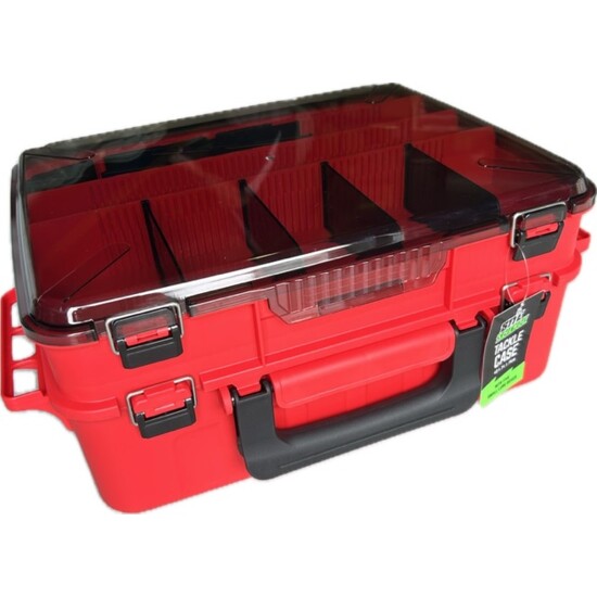 Featuring two latchable sections, the top section of the case is equipped with a tinted clear panel for effortless gear identification. Customizable dividers allow for up to five compartments at the front, while the rear section offers three lanes with twelve dividers included, catering to your specific storage needs.