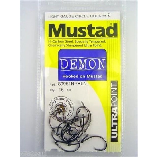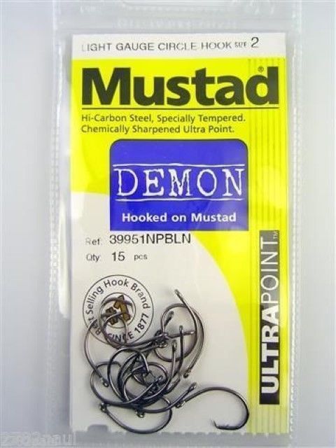 Mustad Demon Circle Hooks Size 2 Qty 15 - 39951npbln Chemically Sharpened Hooks