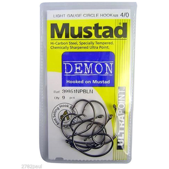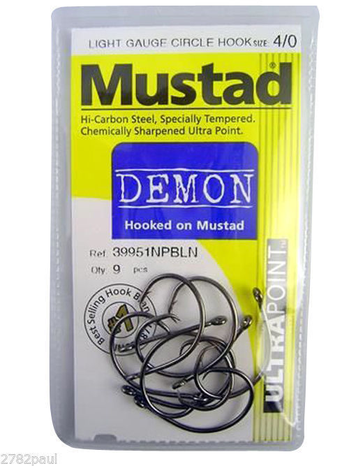 Mustad Demon Circle Hooks Size 4/0 Qty 9 - 39951npbln Chemically Sharpened Hooks
