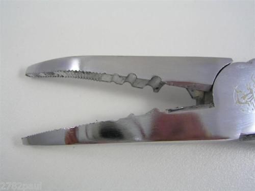 10" Multi-Purpose Pliers with large and small crimper, hook remover, bent nose, hook eye opener and closer, line and trace wire cutter and a gap adjusting screw with lock position. Ideal pliers for ganging hooks.