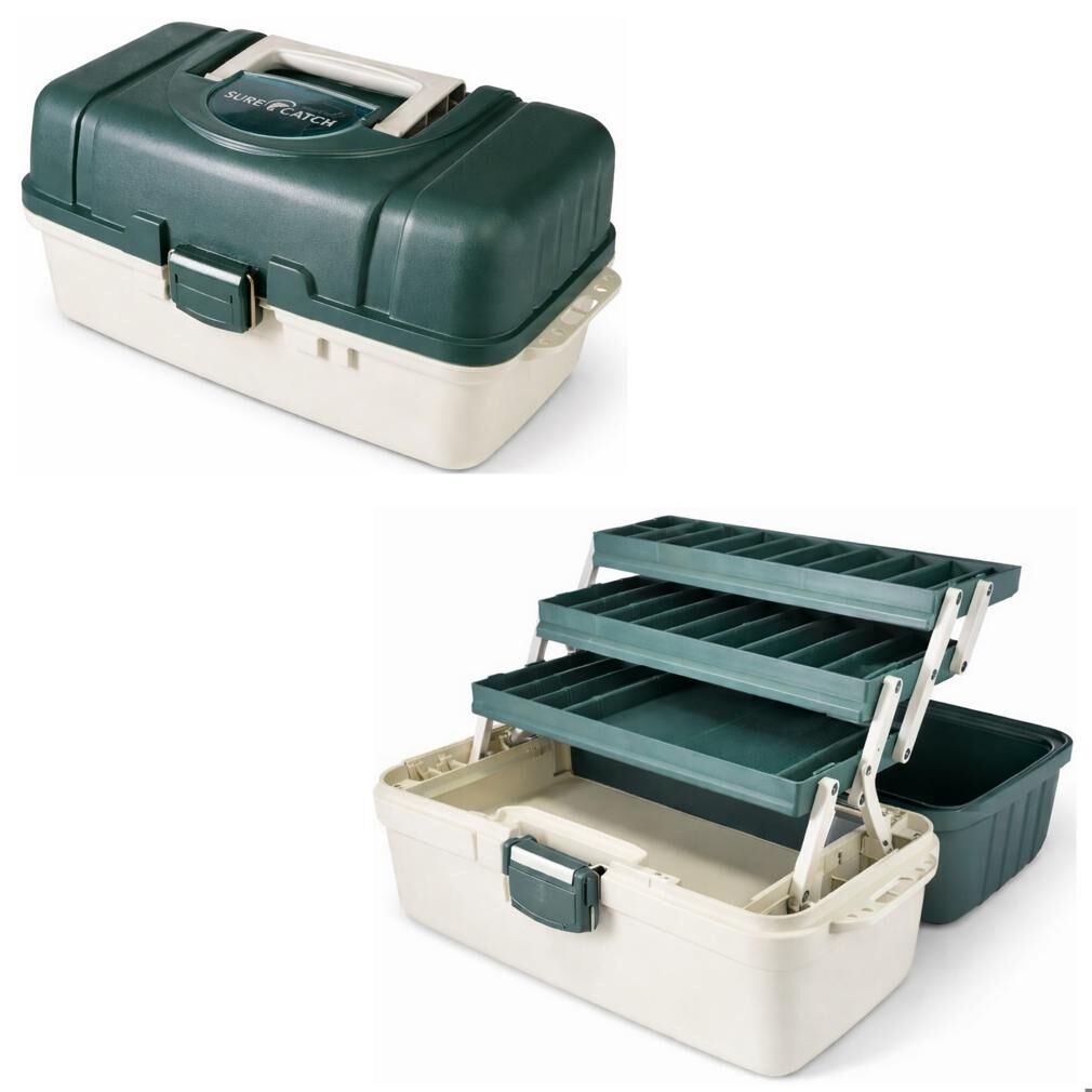 Surecatch 3 Tray Fishing Tackle Box with Adjustable Dividers