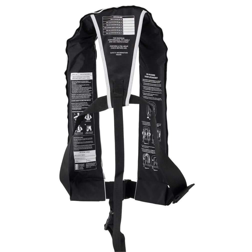 Watersnake Black Manual Inflatable Life Jacket - Level 150 AS4758.1:2022 PFD