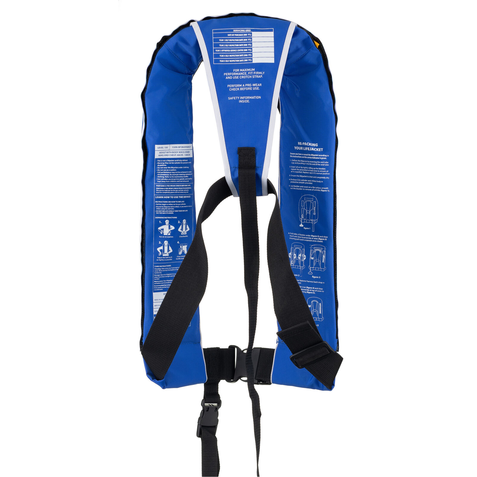 It is designed for all-day comfort, with a soft neoprene neck-liner to avoid irritation or chaffing on the back of your neck. The tough and durable material is nylon Oxford 420D with convenient access for maintenance and servicing. It is rated for adults heavier than 40kg, with chest sizes 80cm to 140cm.