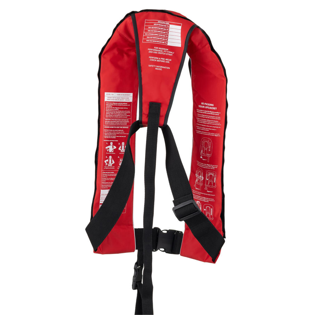 This Watersnake Inflatable Life Jacket is designed flat for easy storage and has a manual inflation system - just pull down on the toggle and the life jacket will inflate within seconds, using the 33g CO2 gas cylinder. There is also a mouthpiece for oral inflation.