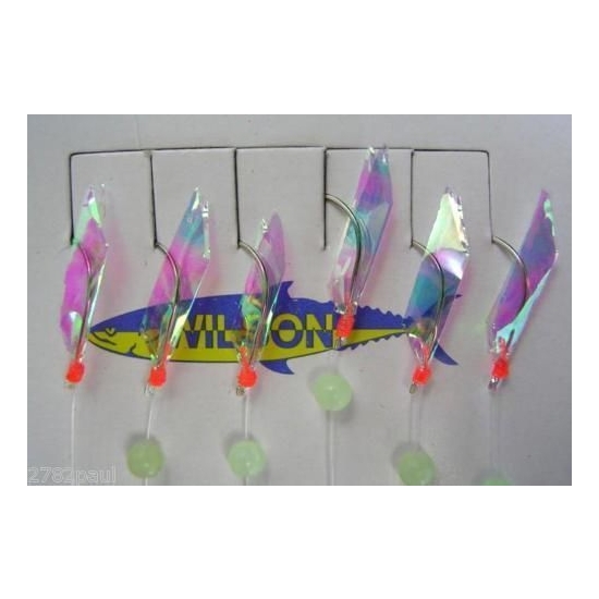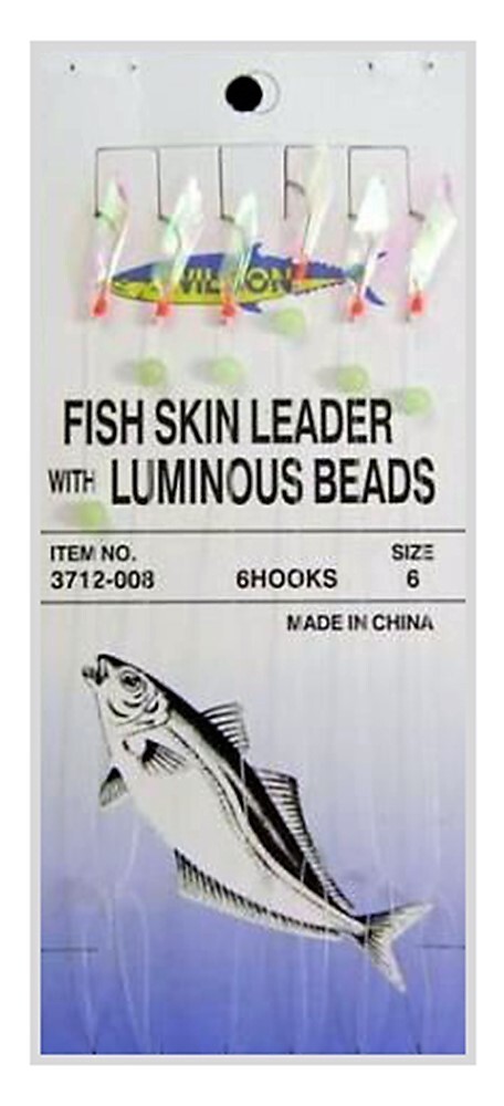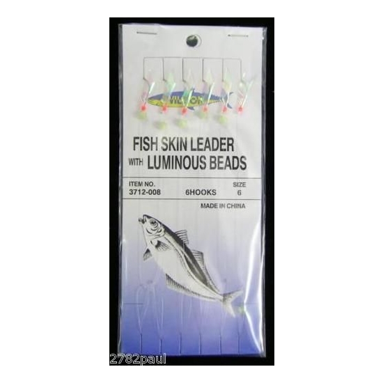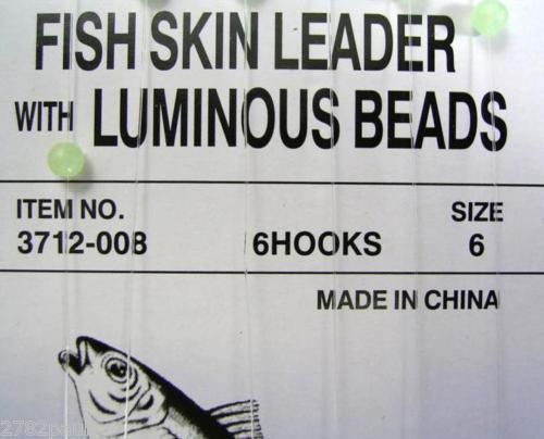 EACH JIG HAS 6 HOOKS rigged with FISH SKIN LEADER and LUMINOUS BEADS