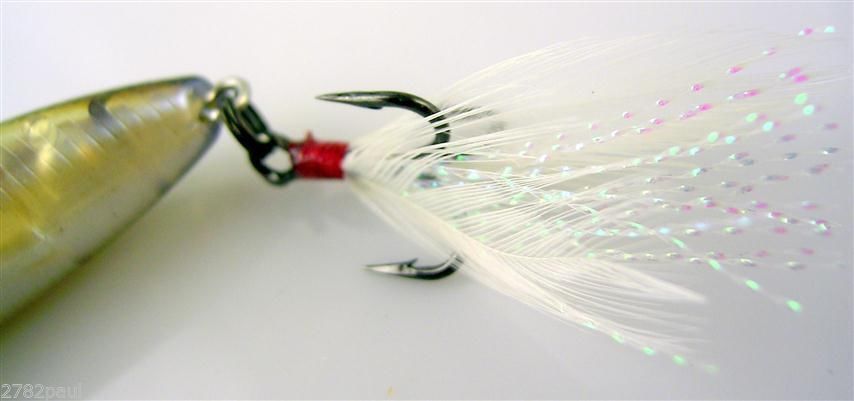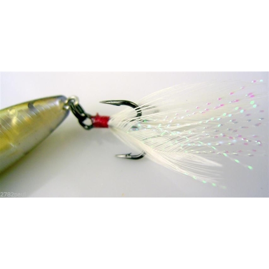 Rear treble dressed with feather and tinsel for extra movement and strike appeal
