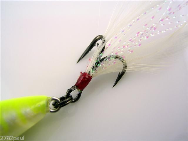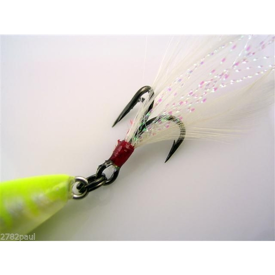 Rear treble dressed with feather and tinsel for extra movement and strike appeal