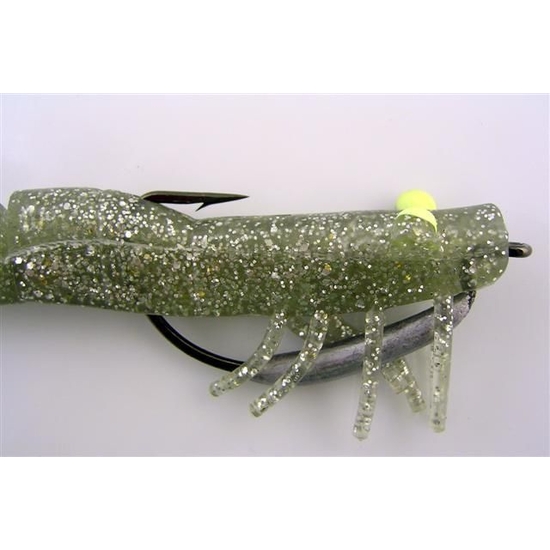 Constructed using a special rubber material, the soft legs of the live shrimp flutter on the drop and mimics the movements of a river shrimp to its true live form. A slow, straight retrieve is all it takes but an occasional twitch will further enhance its liveliness. The soft segmented body curls and straightens naturally when twitched. Complete with fluorescent “glow in the dark” eyes, this winner is ready to entice strikes in both day and night conditions. The versatile lure also allows you to work different terrains through different hook positions. Simply expose the hook to increase the chance of hook ups in open water or conceal the hook point for weedless applications.